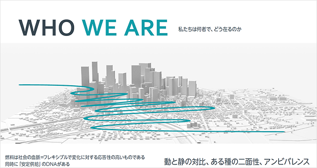 化石燃料を中心とした既存事業と、脱炭素・再生可能エネルギーへの社会的要請。社会インフラを担う企業の使命としての「安定供給」と、市場からもとめられる「変化への対応」——HD化を前に変化と安定という本質的に矛盾する価値を同時に体現しなければならない構造を抱えていました。