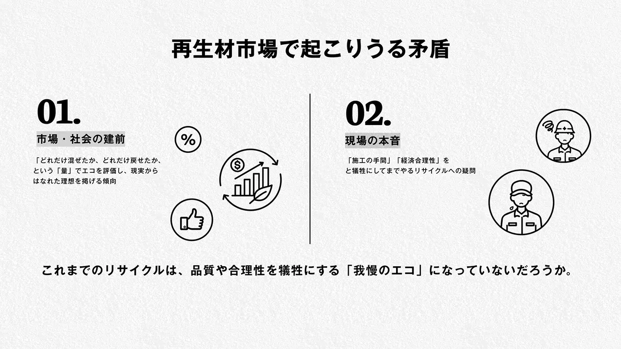 「再生材の一種」「エコ商材」「混ぜもの」といった誤読が、本来の価値を打ち消しかねない状況にありました。